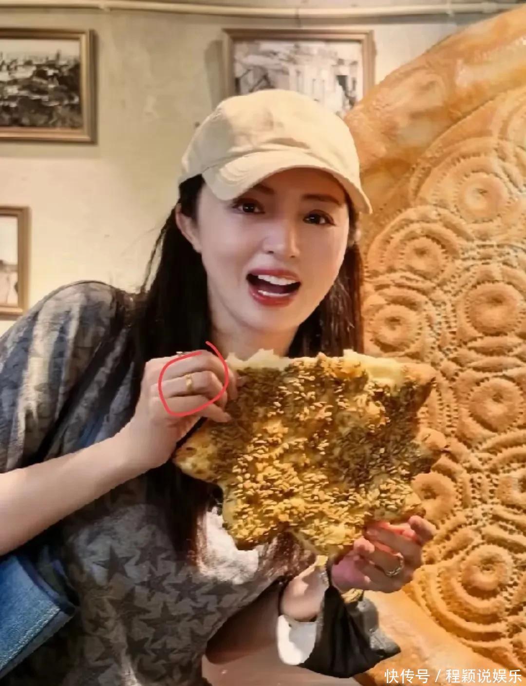 董璇和小酒窝对着烤馕、烤肉大快朵颐,吃得那叫一个香,小酒窝还明星范统共,拍照姿势一套接一套,比董璇还会凹造型。